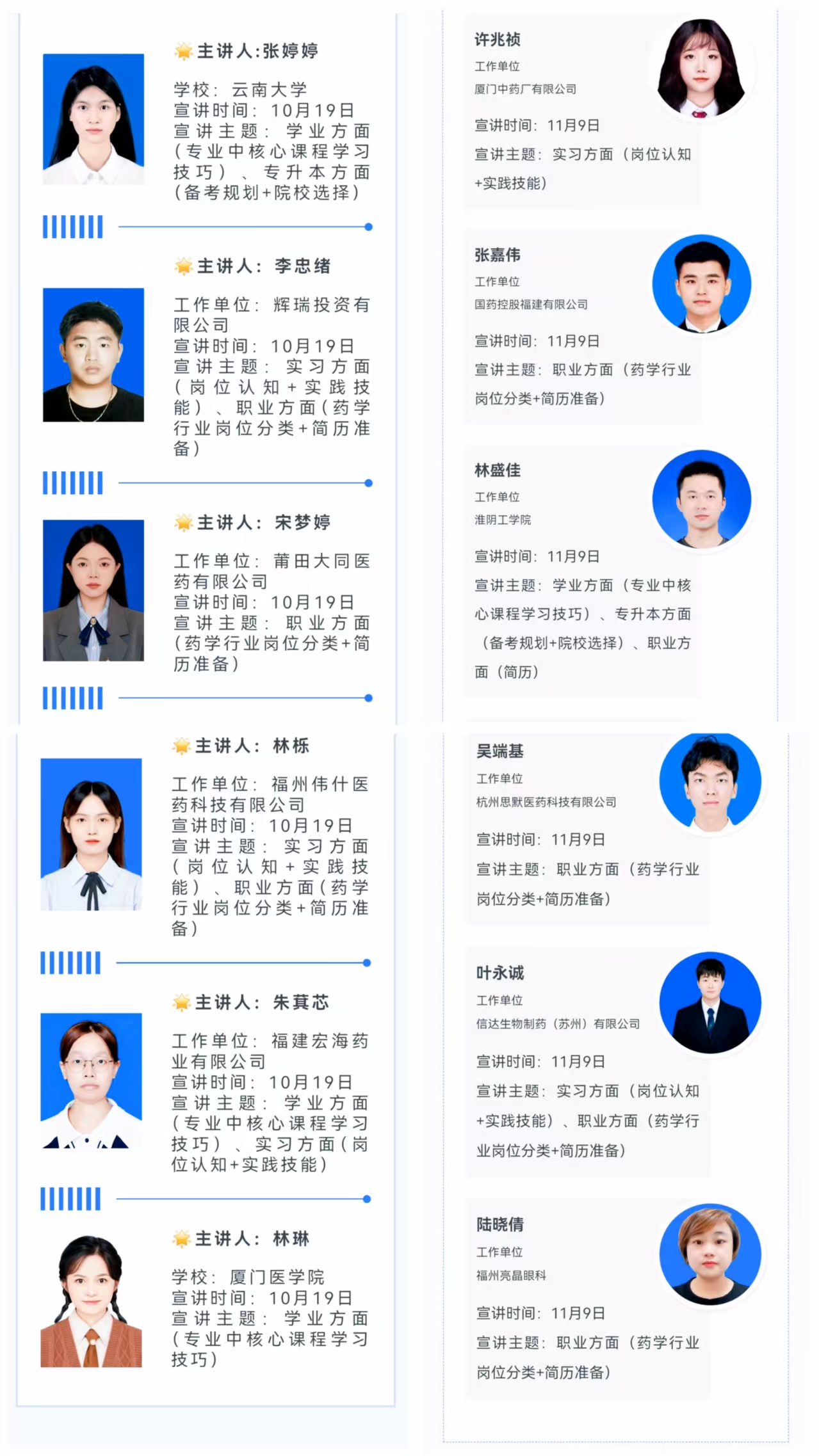 教育的真諦,始終是讓每個(gè)學(xué)生找到屬于自己的星辰大海。自今年10月以來,藥學(xué)院持續(xù)推進(jìn)職業(yè)生涯規(guī)劃系列活動(dòng),從校友的“傳幫帶”到輔導(dǎo)員的“精準(zhǔn)滴灌”,先后舉辦“藥路承經(jīng)驗(yàn) 云端共求索”“藥路過來人,傳遞新篇章”等主題直播,12位優(yōu)秀校友云端相聚,結(jié)合自己的求學(xué)或工作經(jīng)歷與在校學(xué)子共話成長(zhǎng),打破時(shí)空限制,將藥苑精神薪火相傳。未來,藥學(xué)院將繼續(xù)深化校企合作,強(qiáng)化學(xué)風(fēng)建設(shè),為學(xué)?!笆逦濉卑l(fā)展貢獻(xiàn)藥學(xué)力量,助力每一位學(xué)子在職業(yè)道路上揚(yáng)帆遠(yuǎn)航、夢(mèng)想成真。