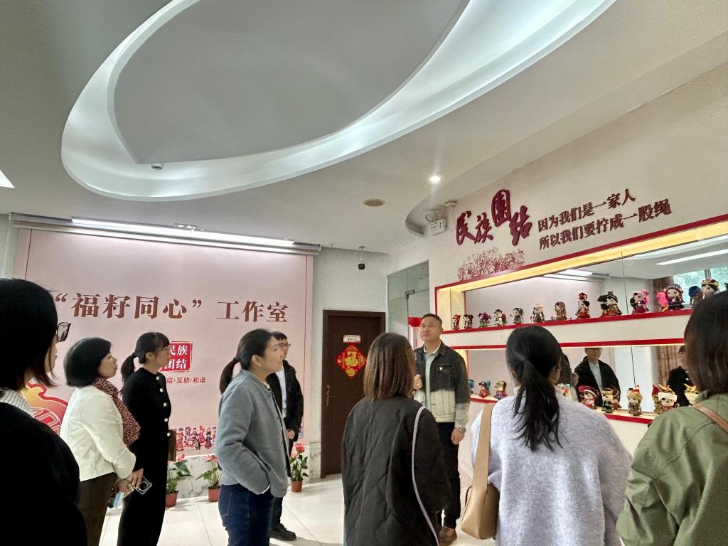 在“福籽同心工作室”負(fù)責(zé)人、福州新疆籍優(yōu)秀企業(yè)家、福州片區(qū)新疆籍人員黨支部書(shū)記艾力·熱合滿的講解下,黨員們系統(tǒng)了解了其運(yùn)行機(jī)制與工作成果。從民族團(tuán)結(jié)展示區(qū)的圖文到文化交流活動(dòng)區(qū)的實(shí)景,每一處細(xì)節(jié)都生動(dòng)展現(xiàn)著工作室在促進(jìn)民族交融、服務(wù)社區(qū)建設(shè)中的扎實(shí)實(shí)踐。支部黨員在參觀后紛紛表示,對(duì)工作室將文化展示、交流活動(dòng)、實(shí)踐合作有機(jī)結(jié)合的思路印象深刻,更深刻體會(huì)到“民族團(tuán)結(jié)不是抽象概念,而是要落實(shí)到具體行動(dòng)中”的實(shí)踐意義。