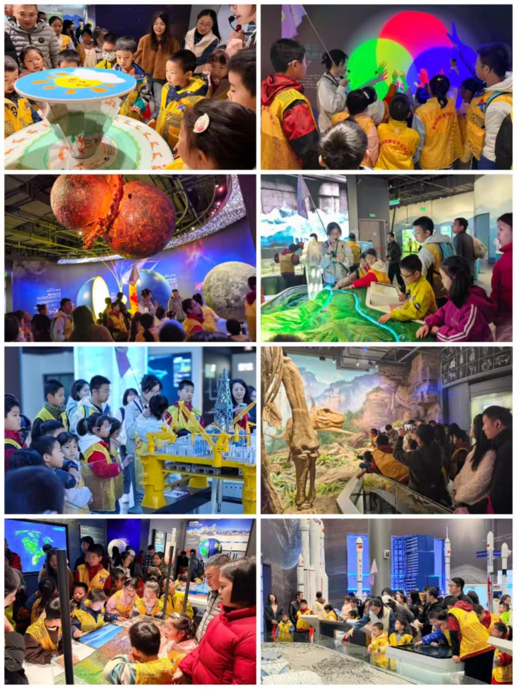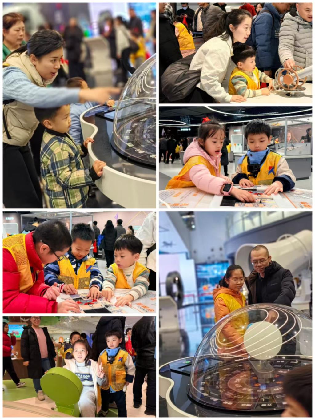 活動現(xiàn)場,在科技館講解老師的帶領下,展廳成了孩子們眼中最生動的課堂:海洋探索展廳,“奮斗者”號模型吸引孩子們踮腳圍觀,驚嘆于深海奧秘;航天航空展廳中,教職工與孩子共同仰望我國航天航空的輝煌成就,共同感受科技強國的自豪;兒童科技樂園里,互動裝置前歡聲此起彼伏,孩子們在動手操作中體驗基礎科學的樂趣。教職工們卸下平日工作的忙碌,全身心陪伴孩子,或俯身講解,或攜手體驗,現(xiàn)場洋溢著輕松愉悅的親子氛圍。