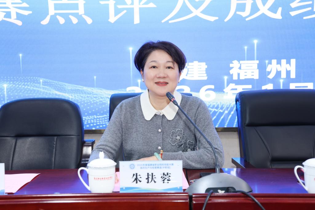 大賽裁判長張立慶、賽項執(zhí)行謝淑珍、賽項監(jiān)督吳嵐葭、我校副校長朱扶蓉和各參賽師生代表共同出席了賽事總結(jié)會。會上宣布了比賽成績。
