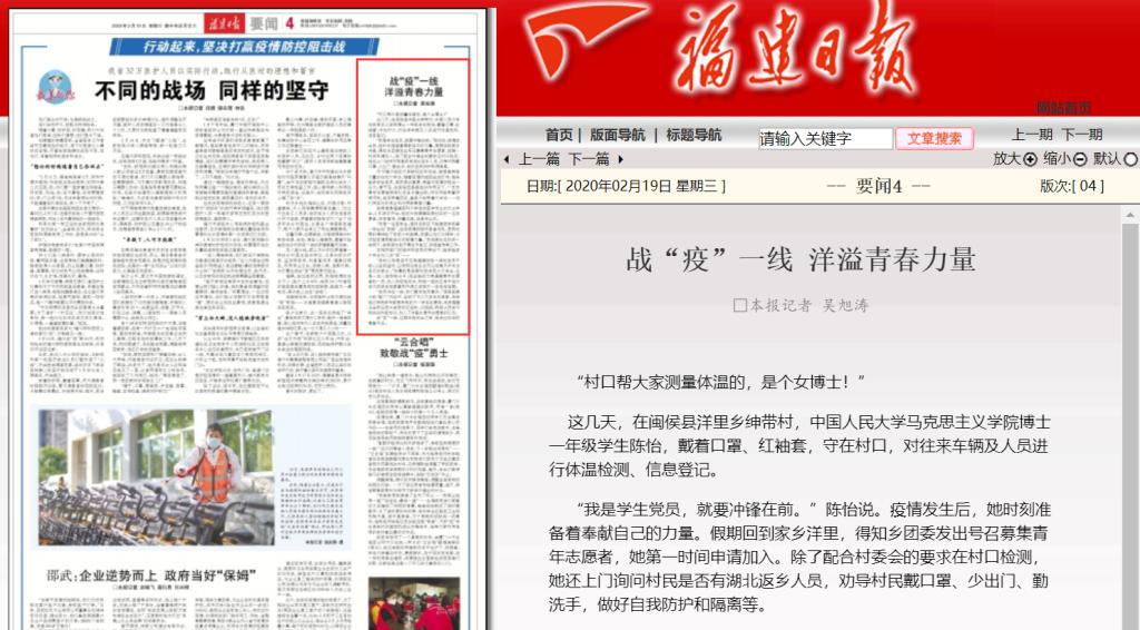 (福建日報(bào)2020年2月19日要聞4版 鏈接:http://fjrb.fjsen.com/fjrb/html/2020-02/19/content_1243422.htm?div=-1)