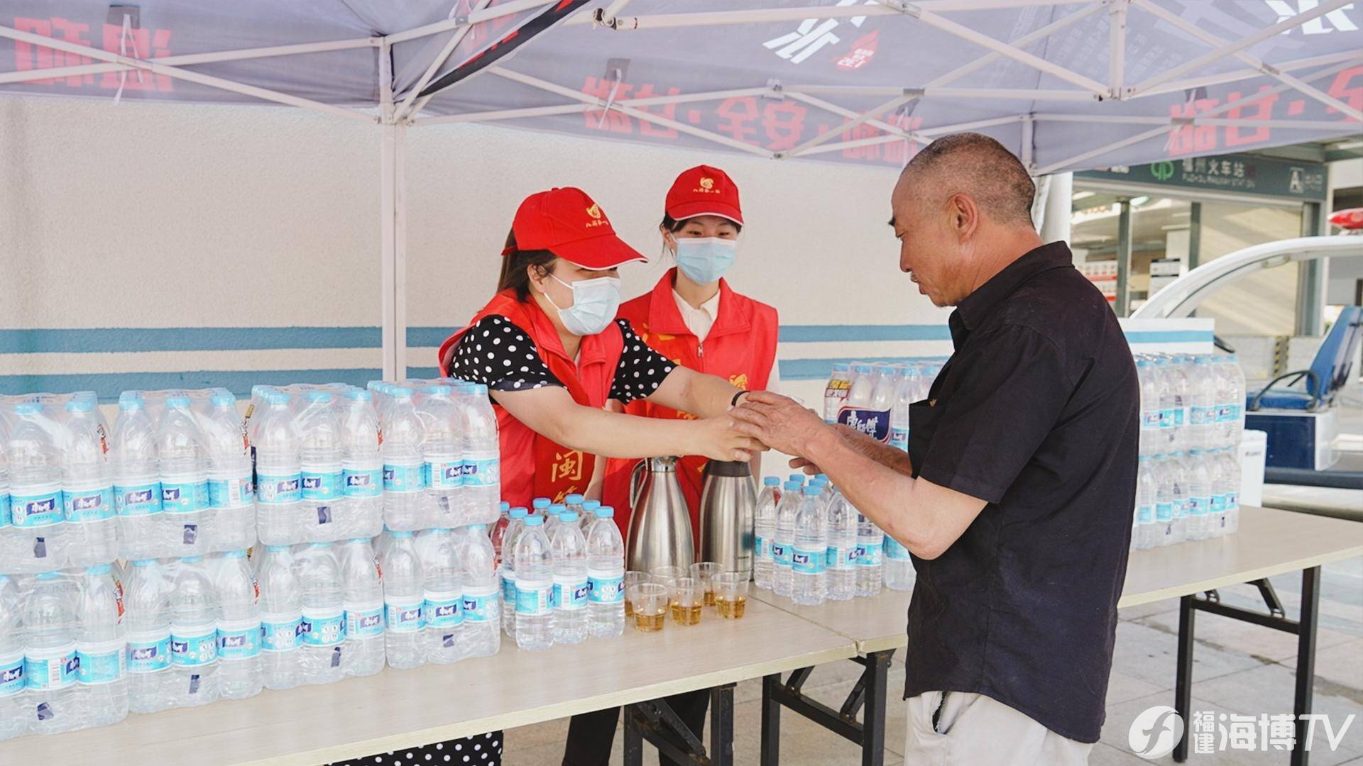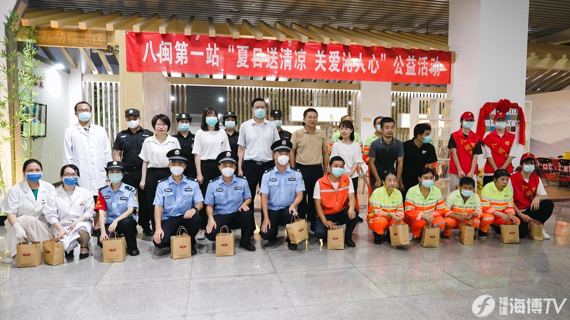 7月14日下午,福州市晉安區(qū)總工會,茶園街道黨工委、辦事處在“八閩第一站”公共服務(wù)平臺舉行“泊心驛站”揭牌儀式暨“夏日送清涼,關(guān)愛沁人心”公益活動啟動儀式,為戶外工作者送上清涼大禮包。愛心公益企業(yè)康師傅飲品福建行銷公司、福建省供銷茶業(yè)集團(tuán)有限公司、福建省天青色文旅集團(tuán)有限公司及火車站附近環(huán)衛(wèi)工人、警務(wù)工作者、保安、志愿者代表等共計40余人參加本次活動。
