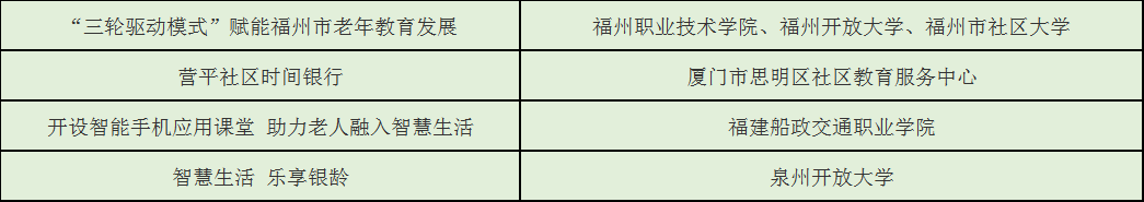 其中,“智慧助老”優(yōu)質(zhì)工作案例中,《“三輪驅(qū)動(dòng)模式”賦能福州市老年教育發(fā)展》等4個(gè)案例入選。