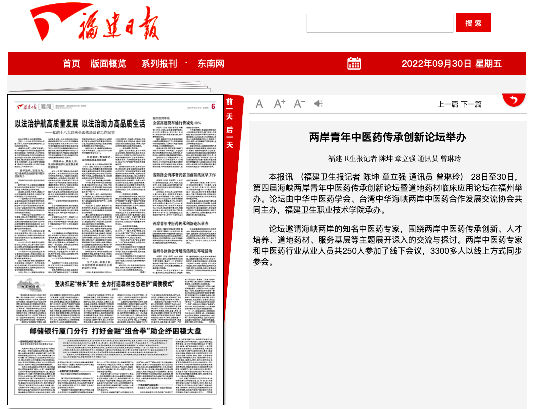 福建衛(wèi)生報(bào) 2022年9月30日 鏈接:https://mp.weixin.qq.com/s/o1A5mPPf6Z0U8GdJFrzalg