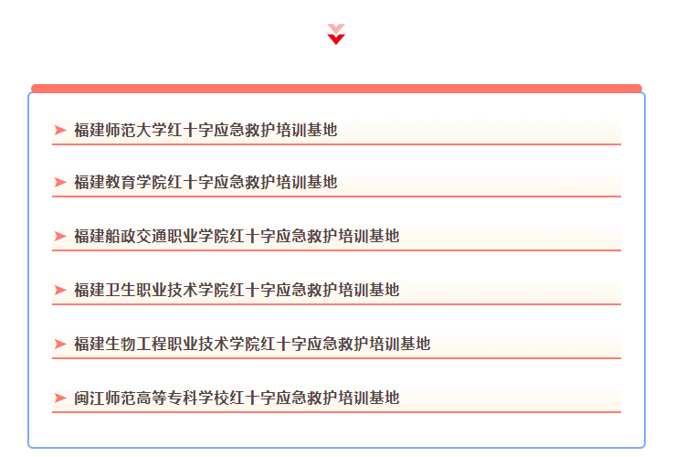 日前,福建省紅十字會公布了2022年度第一批6個紅十字救護員培訓(xùn)機構(gòu)名單,名單如下: