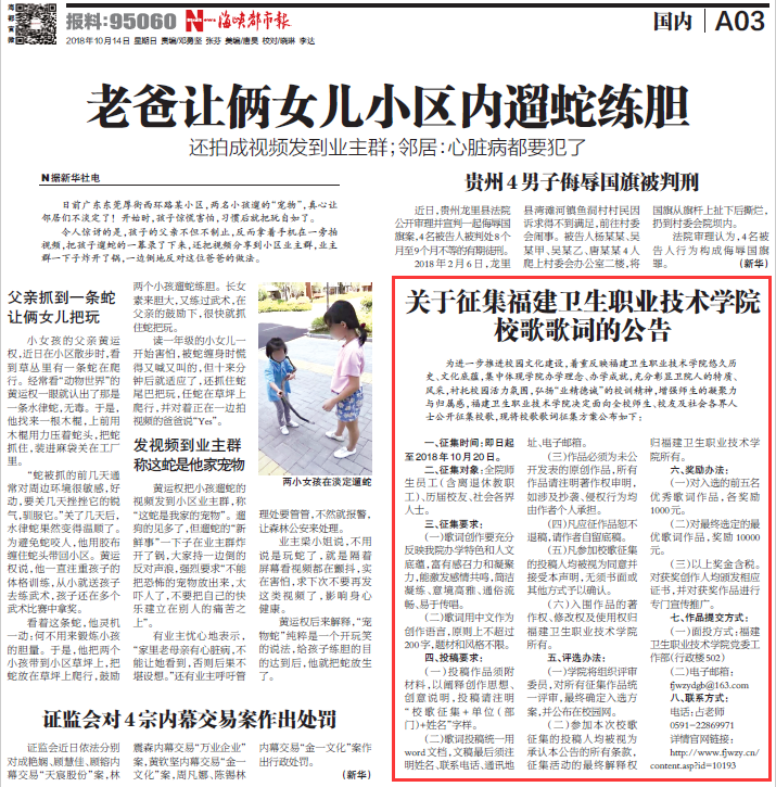 (海峽都市報(bào)2018年10月14日 國(guó)內(nèi)A03版 )