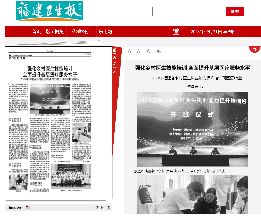 福建衛(wèi)生報(bào)第6版 2023年9月21日 鏈接:https://fjwsb.fjdaily.com/pc/con/202309/21/content_307278.html