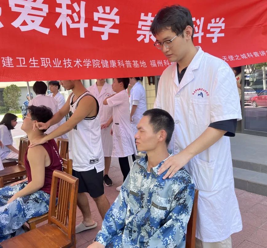 9月17日上午,福建衛(wèi)生職業(yè)技術(shù)學(xué)院20名志愿者在紅十字生命教育科學(xué)館門口開展了校內(nèi)義診活動。