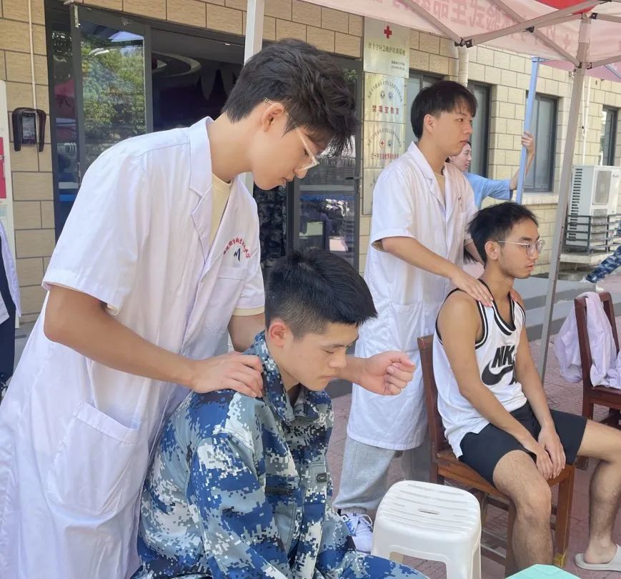 本次活動的重頭戲以推拿為主。志愿者們用手指掌心等部位按摩同學(xué)們的穴位,通過推拿手法來調(diào)理身體的氣血流動。剛下訓(xùn)的“萌新”在推拿的過程中表現(xiàn)出了明顯的放松和舒適感。