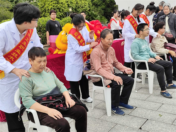 隨后,志愿者們?yōu)槭忻窦坝慰烷_展按摩等理療保健服務,加深大家對中醫(yī)養(yǎng)生、中醫(yī)防病治病等知識的了解,進一步增強大眾自我保健的意識。