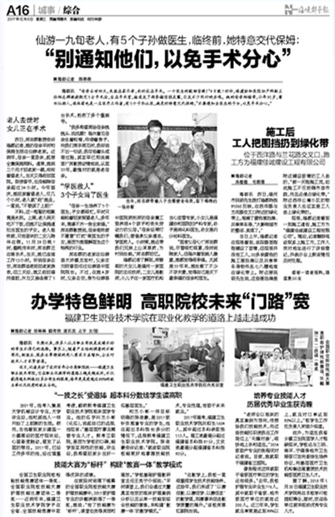 “老師會以臨床的真實案例為導向,傳授給我們技能技術(shù),而這些技能知識使我在工作崗位上‘無縫對接’,很快地上手和適應?!?014級助產(chǎn)專業(yè)的張程依對記者說。目前,她就職于福建省立醫(yī)院。