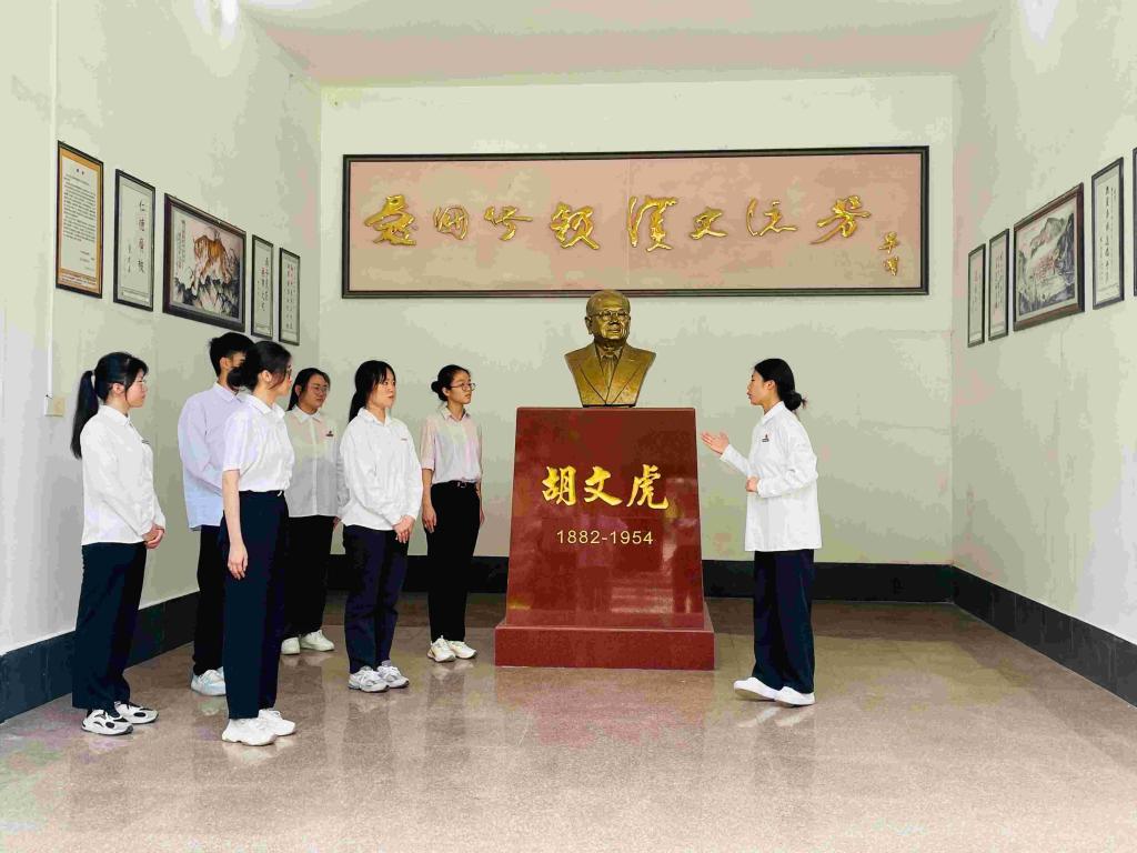 僑情深幾許,僑領(lǐng)顯風(fēng)范。實(shí)踐隊(duì)一行追尋僑領(lǐng)的足跡,來(lái)到了胡甫開(kāi)先生在中共閩西南潮梅特委和廣大僑胞的支持下發(fā)起創(chuàng)辦的僑育中學(xué)開(kāi)展調(diào)研。1940年春,國(guó)民黨當(dāng)局覺(jué)察僑育中學(xué)有地下黨在活動(dòng),便借僑育中學(xué)沒(méi)有“立案”為由,欲強(qiáng)行封閉僑育中學(xué),扼殺“革命搖籃”于萌芽之初,在這“山雨欲來(lái)風(fēng)滿樓”的嚴(yán)峻時(shí)刻,首任董事長(zhǎng)胡文虎先生聞?dòng)嵁?dāng)即致電當(dāng)時(shí)的教育廳廳長(zhǎng)以示抗議,頂逆風(fēng)、挽狂瀾,才使得新生的革命學(xué)校免除滅頂之災(zāi)。在學(xué)校會(huì)議室、校史館、校園小道,實(shí)踐隊(duì)師生與僑育中學(xué)副校長(zhǎng)唐建滾和教研室主任胡勝仁深入交流,領(lǐng)略著這里濃濃的“僑味”和“紅味”,共同探討新時(shí)代僑鄉(xiāng)教育事業(yè)的發(fā)展。