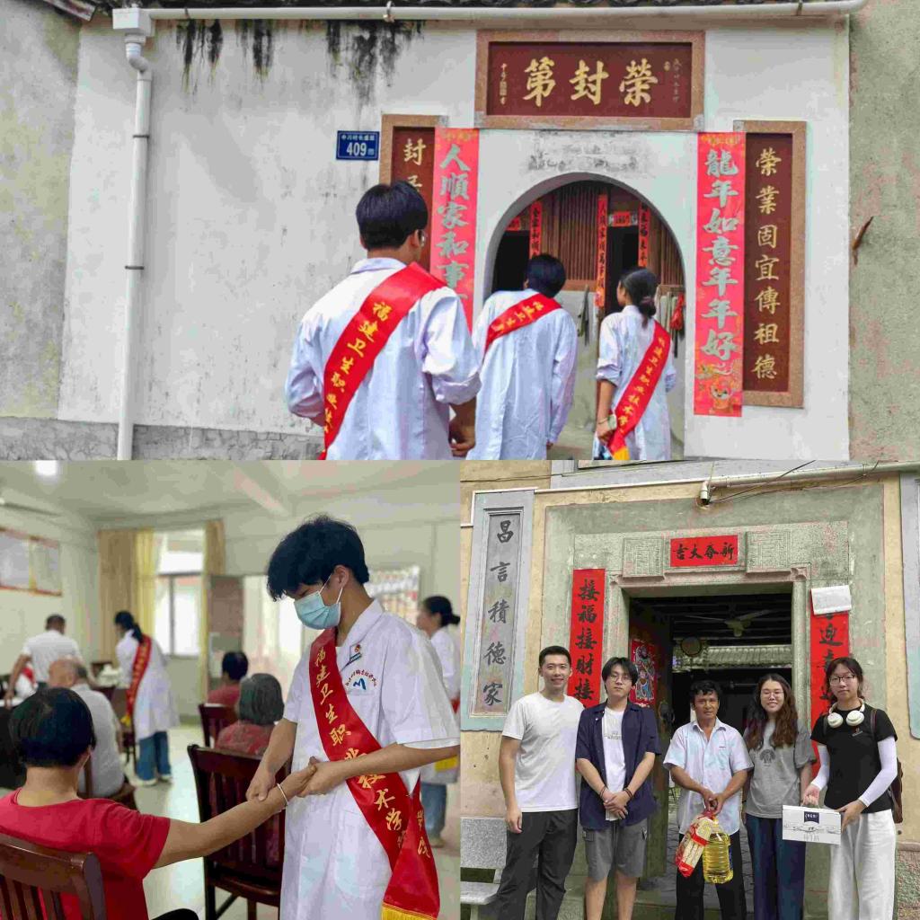 華僑愛(ài)國(guó)愛(ài)鄉(xiāng)、熱心公益、無(wú)私奉獻(xiàn)的精神在以胡文虎為代表的華僑龍商身上體現(xiàn)得淋漓盡致,實(shí)踐隊(duì)員們?cè)谶@堂行走的“大思政課”中深受鼓舞。20名閩衛(wèi)青年化身“行走的小藥箱”,用自身所學(xué)專業(yè)知識(shí)守護(hù)村民健康,教給村民推拿的基本手法和居家護(hù)理等醫(yī)學(xué)知識(shí),給村民帶去紅花油、板藍(lán)根等常用藥,囑咐村民科學(xué)使用藥品,讓村民真正感受到了“面對(duì)面”的醫(yī)療暖心服務(wù)。同學(xué)們還走進(jìn)中川低保戶、特困村民家中,化身“暖心使者”送去油、米等慰問(wèn)品。