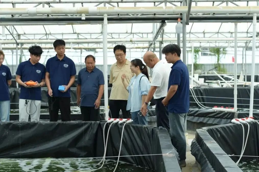 實(shí)踐隊(duì)在對(duì)蝦繁育基地了解養(yǎng)殖情況