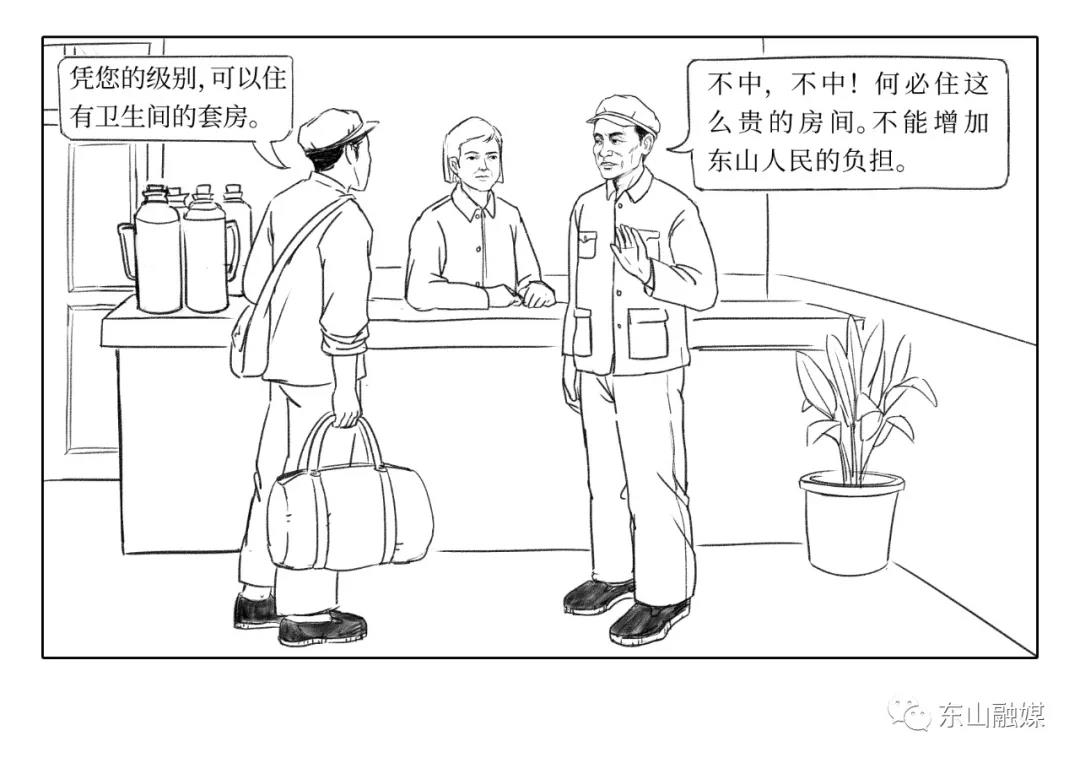 通訊員陳耀水陪著谷文昌到了漳州,在接待處登記住宿的時(shí)候,服務(wù)員問(wèn)住什么檔次的房間。憑谷書記的級(jí)別,完全可以住有衛(wèi)生間的套房,可是住套間一個(gè)晚上要10元。谷文昌一聽連連擺手:“不中,不中!何必住這么貴的房間。不能增加?xùn)|山人民的負(fù)擔(dān)。”于是兩人離開接待處,找到一家相當(dāng)差的旅社,住一晚每人只要1元2角,只是房間里沒(méi)有衛(wèi)生間,床鋪也窄。谷文昌一聽便說(shuō):“中!就住這?!?/p>