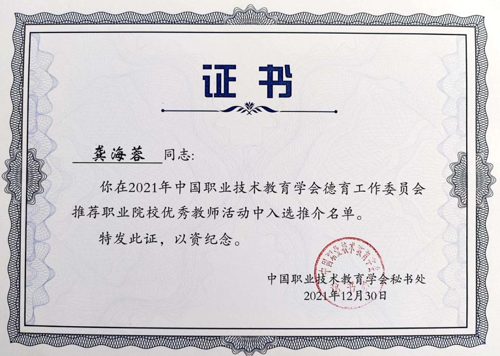 近日,由中國職業(yè)技術(shù)教育學(xué)會組織的“職業(yè)院校優(yōu)秀教師、優(yōu)秀畢業(yè)生和優(yōu)秀在校生”推薦活動結(jié)果揭曉,我校護(hù)理學(xué)院院長龔海蓉副教授入選2021年中國職業(yè)技術(shù)教育學(xué)會德育工作委員會優(yōu)秀教師。