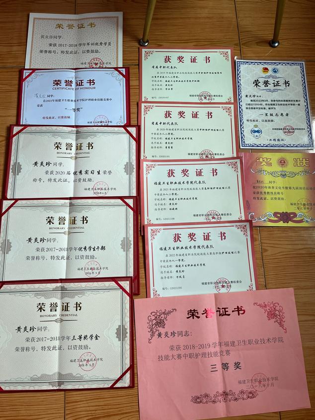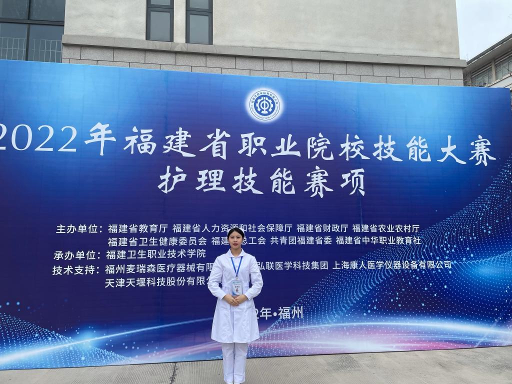 除了優(yōu)異的學(xué)習(xí)成績(jī),黃炎珍還四次代表學(xué)校參加省級(jí)護(hù)理技能競(jìng)賽。在高手云集的賽場(chǎng),黃炎珍一次次挑戰(zhàn)自我、超越自我。在備戰(zhàn)2022年省賽的一個(gè)月里,她只休息了2天,培訓(xùn)老師列出的計(jì)劃表是,每天從早上7點(diǎn)到晚上10點(diǎn)。黃炎珍經(jīng)常給自己“加碼”,學(xué)到凌晨1~2點(diǎn)。最終,她憑借日常的刻苦訓(xùn)練和賽場(chǎng)中“魔鬼般”的細(xì)節(jié),以超越第二名2分的“斷層式”領(lǐng)先,穩(wěn)穩(wěn)奪得一等獎(jiǎng)第一名。