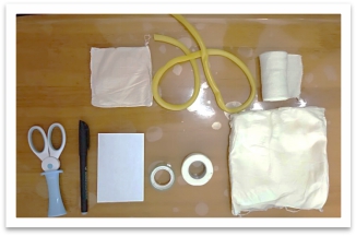 實(shí)訓(xùn)在線教學(xué)主要通過線上授課→線下實(shí)踐→線上反饋的模式進(jìn)行。教師在課前通知學(xué)生根據(jù)自身情況準(zhǔn)備實(shí)訓(xùn)用物,同學(xué)們?cè)?/span>求助家人朋友幫助的同時(shí),也發(fā)揮自己的聰明才智,各自發(fā)掘可用之物,玩偶、枕頭、靠墊等充當(dāng)CPR模擬人,保溫杯、掃帚、拖把等止血包扎模擬道具齊上陣。