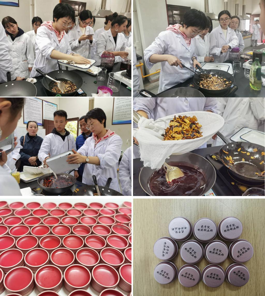藥學(xué)院本草文化宣傳周期間,藥學(xué)院學(xué)生會創(chuàng)新創(chuàng)業(yè)部、藥學(xué)院第一黨支部“雙帶頭人”工作室聯(lián)合開展特色中藥產(chǎn)品制作體驗(yàn)活動。本次活動由藥學(xué)院第一黨支部副書記林玲擔(dān)任指導(dǎo)教師,中藥教研室主任陳鈺博士擔(dān)任技術(shù)顧問,作為第一黨支部“雙帶頭人”工作室的骨干成員,他們帶領(lǐng)支部黨員指導(dǎo)學(xué)生制作了一系列文化韻味濃厚的中藥產(chǎn)品。