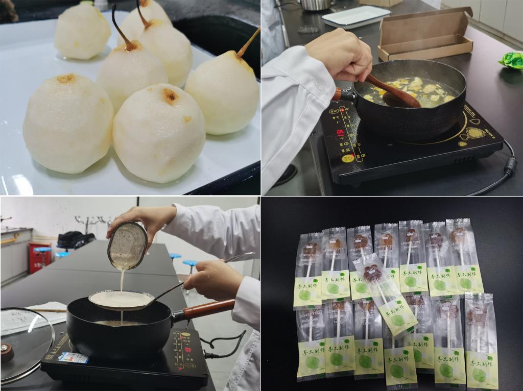 清潤棒棒糖也是林玲老師指導(dǎo)下的一個創(chuàng)新產(chǎn)品?!鞍舭籼沁x用的雪梨、川貝、羅漢果等均為上品,既美味可口又保健養(yǎng)生,試吃時大家都贊不絕口?!碧崞鸢舭籼堑闹谱鳎淘HA(19中藥301班)的臉上滿滿都是成就感?!斑@次的棒棒糖感覺挺養(yǎng)生,我家孩子平素一吃棒棒糖就上火,可這次的棒棒糖吃了不上火,很不錯。”藥學(xué)院教學(xué)辦公室主任黃艷說。“這次的棒棒糖純手工熬制,選料上乘,各種食材、中藥材我們工作室都嚴(yán)格把關(guān),既讓學(xué)生將課堂所學(xué)中藥鑒定知識用于選料,也教育學(xué)生要選良心藥、做良心人?!秉h支部組織委員陳鈺說。誰說良藥一定苦口,藥學(xué)院第一黨支部“雙帶頭人”工作室就嘗試讓良藥有效又可口。