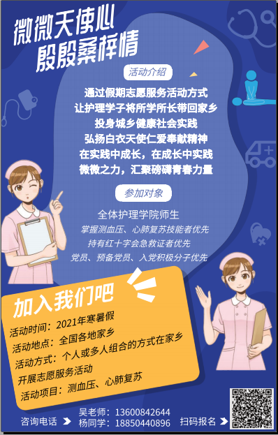 為充分發(fā)揮高?!半p帶頭人”教師黨支部在黨建、學(xué)術(shù)方面的獨(dú)特優(yōu)勢,做好黨支部帶頭引領(lǐng)作用與戰(zhàn)斗堡壘作用,同時(shí)增強(qiáng)共青團(tuán)帶領(lǐng)青年在經(jīng)濟(jì)社會(huì)發(fā)展中發(fā)揮生力軍和突擊隊(duì)作用,弘揚(yáng)紅十字會(huì)的人道、博愛、奉獻(xiàn)精神。我校護(hù)理學(xué)院第一黨支部協(xié)同護(hù)理學(xué)院團(tuán)總支紅十字會(huì)開展返鄉(xiāng)志愿服務(wù)活動(dòng),組織護(hù)理學(xué)子在2020年寒假返鄉(xiāng)期間,發(fā)揮護(hù)理專業(yè)的知識(shí)與技能,在家鄉(xiāng)開展志愿服務(wù)活動(dòng),反哺家鄉(xiāng)的養(yǎng)育之恩,弘揚(yáng)白衣天使的仁愛奉獻(xiàn)精神。