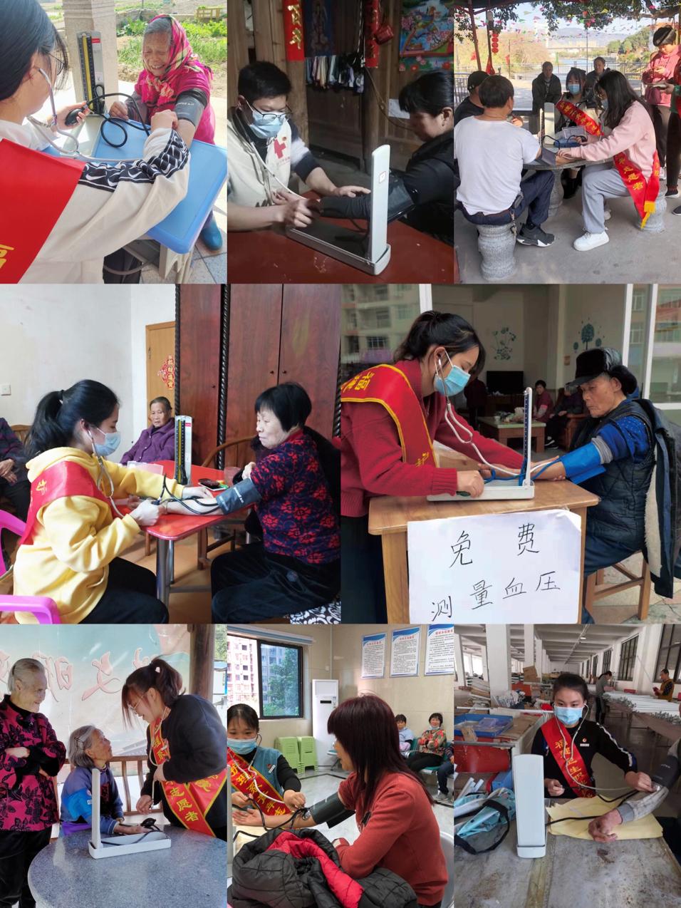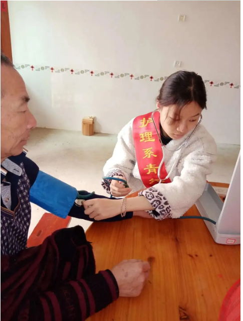 高血壓是危害全人類的常見慢性病,高血壓患病人數(shù)不僅多,而且呈現(xiàn)逐年增高及年輕化趨勢,但有些老年人因?yàn)樾袆?dòng)和交通不便等各種因素,導(dǎo)致無法外出定期監(jiān)測血壓,還有部分人群從未測量過血壓。本次返鄉(xiāng)志愿服務(wù)活動(dòng),護(hù)理學(xué)子們持著學(xué)校開具的介紹信,在當(dāng)?shù)叵嚓P(guān)部門的同意和支持下,或在村口、衛(wèi)生院等設(shè)置血壓測量點(diǎn),或挨家挨戶的入戶為鄉(xiāng)親們測量血壓,講解血壓相關(guān)知識(shí)。微微關(guān)懷融化冬日的寒冷,鄉(xiāng)民們受益了,對護(hù)理學(xué)子來說,是“助人”,亦是“自助”。