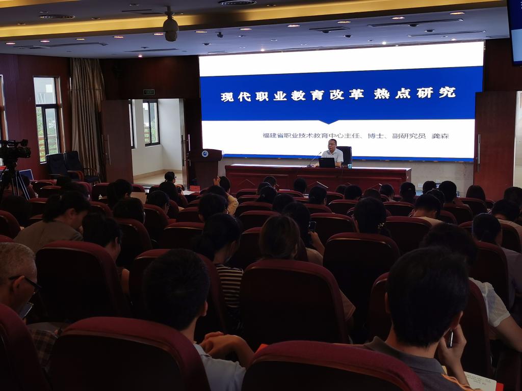 2021年5月13日下午,教務(wù)處邀請(qǐng)福建省職業(yè)技術(shù)教育中心主任龔森博士來我校開展《現(xiàn)代職業(yè)教育改革與研究熱點(diǎn)》專題講座。本次講座在實(shí)訓(xùn)樓四樓報(bào)告廳舉行,由教務(wù)處副處長李淼淼主持,各系教師及相關(guān)職能部門行政人員聆聽了此次講座。