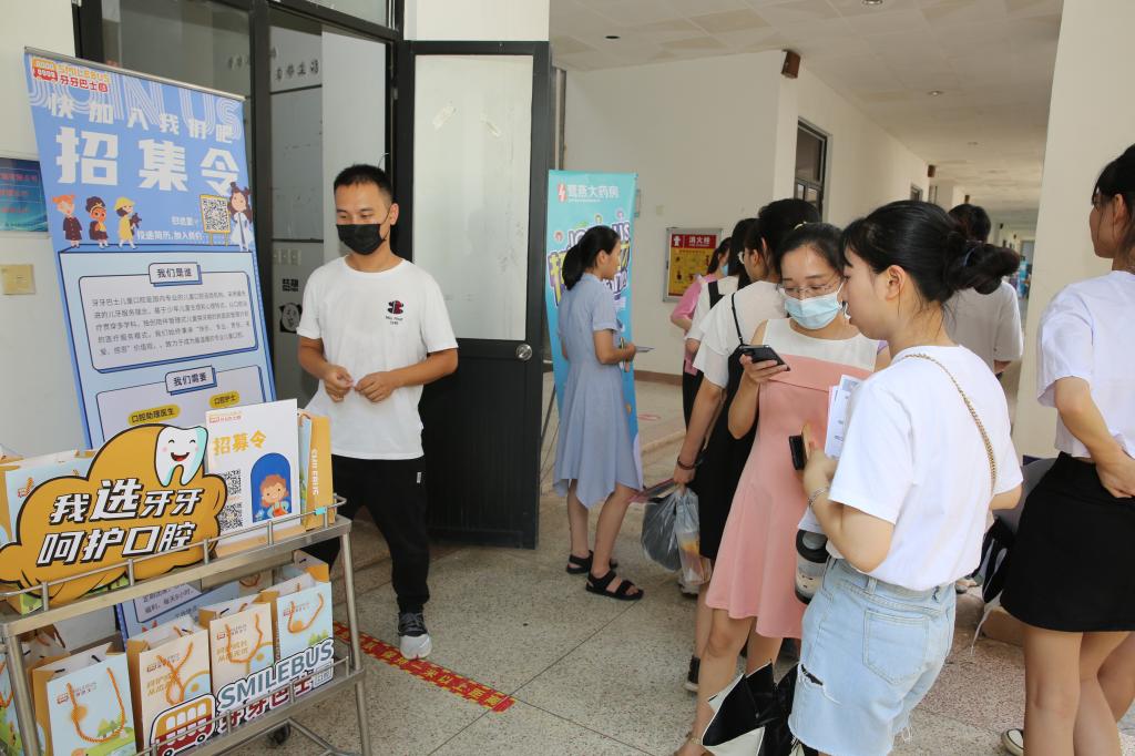 考慮到天氣炎熱,本次招聘改變了以往廣場式招聘模式,招聘場所改在教學(xué)樓,教室內(nèi)有空調(diào),簽到處設(shè)有空調(diào)扇,為參會單位和畢業(yè)生防暑降溫。