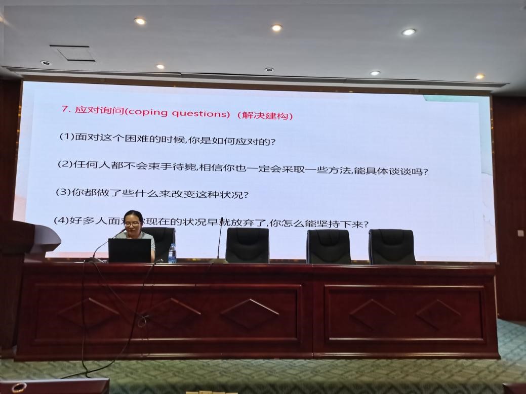 鄭曉婧介紹了焦點解決短期治療技術(shù)在學(xué)校心理健康教育中的應(yīng)用,并與同學(xué)們分享幾項實務(wù)技術(shù)。