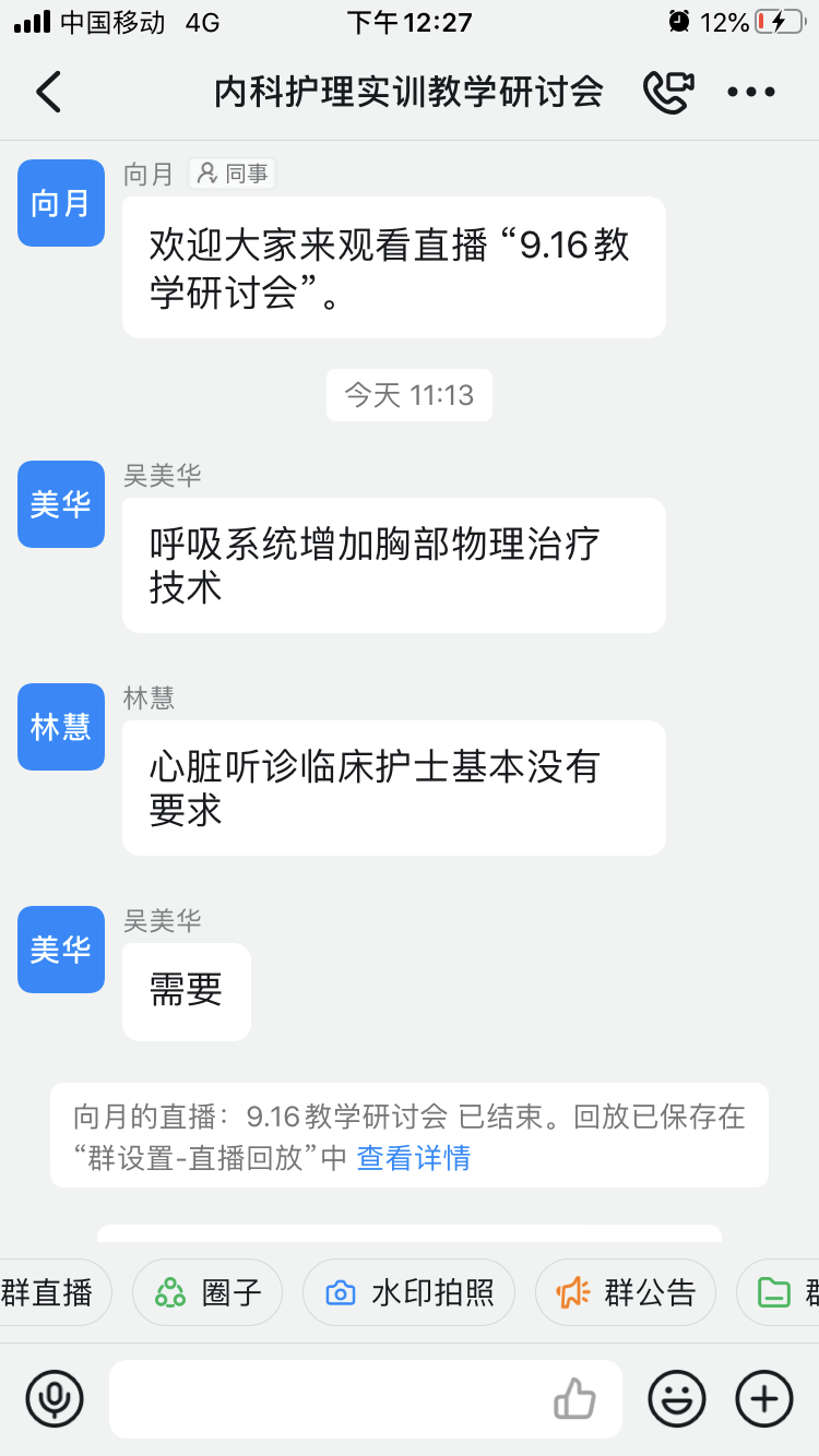 本次教學(xué)研討會(huì)對(duì)護(hù)理核心課程《成人護(hù)理-內(nèi)科護(hù)理》的實(shí)訓(xùn)教學(xué)開課情況、現(xiàn)狀及存在的問題進(jìn)行梳理,問診把脈,校內(nèi)和各家醫(yī)院的內(nèi)科護(hù)理教師們積極建言獻(xiàn)策,共同培養(yǎng)出新時(shí)代合格人才打下了牢固的基礎(chǔ)。