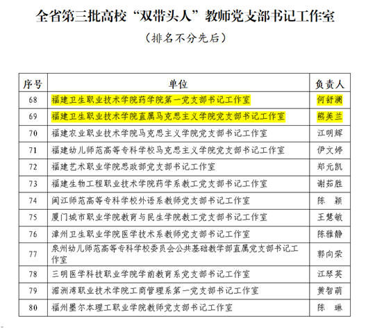 近日,省委教育工委公布了第三批高校“雙帶頭人”教師黨支部書記工作室培育建設(shè)名單,我校藥學(xué)院第一黨支部和直屬馬克思主義學(xué)院黨支部兩個(gè)工作室成功入選。這是繼我校6個(gè)黨組織入選全省黨建工作標(biāo)桿院系、樣板支部培育創(chuàng)建單位后,持續(xù)推進(jìn)新時(shí)代高校黨建示范創(chuàng)建和質(zhì)量創(chuàng)優(yōu)工作取得的新成效。