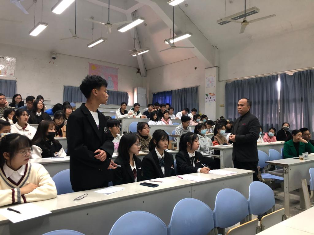 解疑答惑,共創(chuàng)未來。班會末尾,師生間進行互動問答,大家就日常生活、校園學(xué)風(fēng)建設(shè)、下一階段的學(xué)習(xí)計劃等問題展開交流探討,老師們對同學(xué)提出的疑問做出耐心解答。