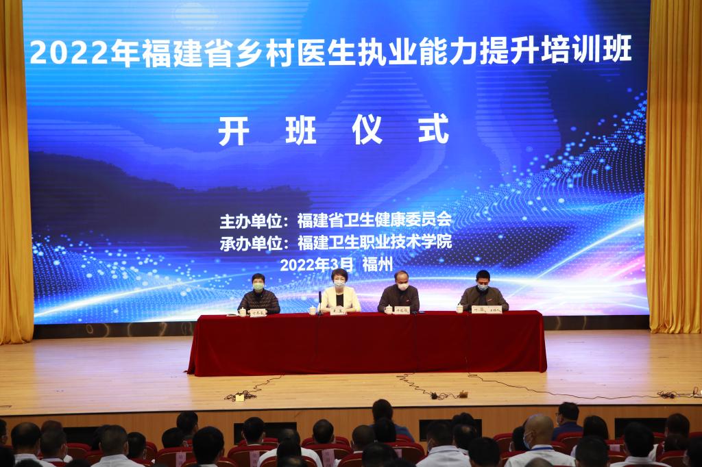 3月2日,2022年福建省鄉(xiāng)村醫(yī)生執(zhí)業(yè)能力提升培訓(xùn)班開班儀式在我校學(xué)術(shù)廳舉行。福建省衛(wèi)健委副主任黃昱、校長許能鋒出席儀式并講話。省衛(wèi)健委基層處處長付冬香、四級(jí)調(diào)研員葉晶晶,校黨政辦公室、護(hù)理學(xué)院、醫(yī)學(xué)院、健康管理系等部門負(fù)責(zé)人出席儀式,首批300余名鄉(xiāng)村醫(yī)生參加培訓(xùn)。開班儀式由繼續(xù)教育學(xué)院副院長何烜主持。