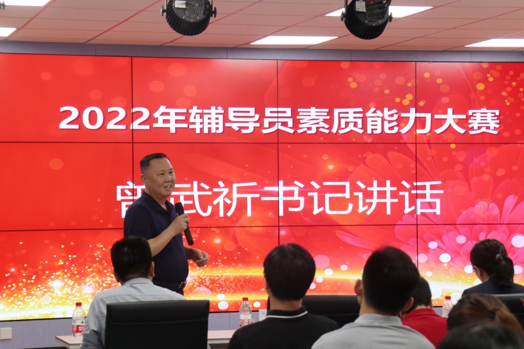 大賽最后,曾武祈向獲獎選手們表示衷心的祝賀和肯定,對與會評委精彩、精辟、精準的點評表示感謝。他強調(diào),輔導(dǎo)員隊伍是思政工作的排頭兵和主力軍,使命光榮同時責(zé)任重大,輔導(dǎo)員素質(zhì)能力大賽是輔導(dǎo)員工作風(fēng)采的集中展示和對這支隊伍全方位的考核。他希望賽事越辦越好,選手們能走出校園,走上省賽、國賽的更大舞臺。他向?qū)W生管理和輔導(dǎo)員隊伍提出三點殷切期望:一要提升政治素養(yǎng),加強理論學(xué)習(xí),為黨育人為國育才,做學(xué)生成長成才的指導(dǎo)者和引路人;二要練就過硬本領(lǐng),做到能承天接地,理論思想能入腦入心,踐行于工作實際,搭建好與學(xué)生間的橋梁,營造風(fēng)清氣正的良好氛圍;三要通過舉辦比賽推進工作,推動隊伍建設(shè),總結(jié)經(jīng)驗,檢驗工作。