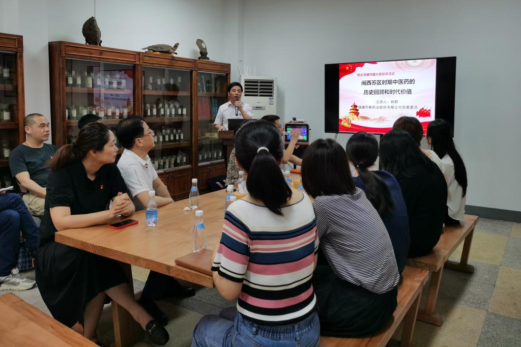 活動(dòng)伊始,福建同春藥業(yè)股份有限公司黨委委員、福州同春中藥有限公司董事長(zhǎng)林群以《閩西蘇區(qū)時(shí)期中醫(yī)藥的歷史回顧和時(shí)代價(jià)值》為主題給全體黨員上了一堂精彩的黨課。林群詳細(xì)講述了中醫(yī)藥在中央蘇區(qū)(福建)所發(fā)揮出的重要作用與力量,以及軍隊(duì)在缺醫(yī)少藥、衛(wèi)生條件落后的狀況下,依靠群眾,不畏困難,開(kāi)拓醫(yī)藥衛(wèi)生事業(yè)的奮斗歷程。此次黨課使黨員們對(duì)中醫(yī)藥文化有了更深的認(rèn)識(shí),并激勵(lì)大家凝心聚力推動(dòng)中醫(yī)藥事業(yè)傳承創(chuàng)新發(fā)展。