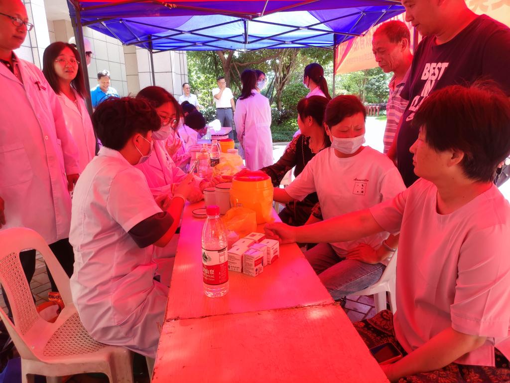 師生們通過開展血型鑒定,發(fā)放無償獻血宣傳材料,普及了無償獻血的常識和意義,提高居民參加無償獻血的積極性。師生們還為居民開展血糖測定和乙肝表面抗原檢測,普及糖尿病和乙肝預(yù)防知識。黨員老師結(jié)合檢測結(jié)果,細心叮囑居民要注意監(jiān)測身體狀況,養(yǎng)成健康飲食起居習(xí)慣。