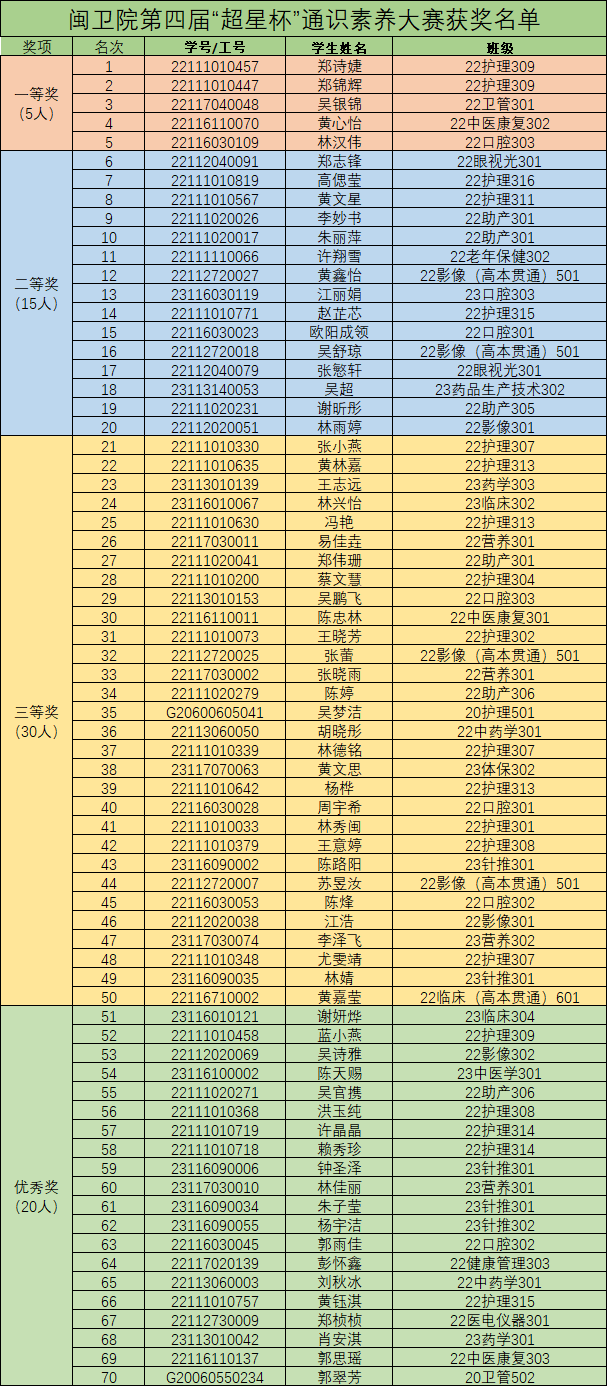 閩衛(wèi)院第四屆“超星杯”通識(shí)素養(yǎng)大賽獲獎(jiǎng)名單