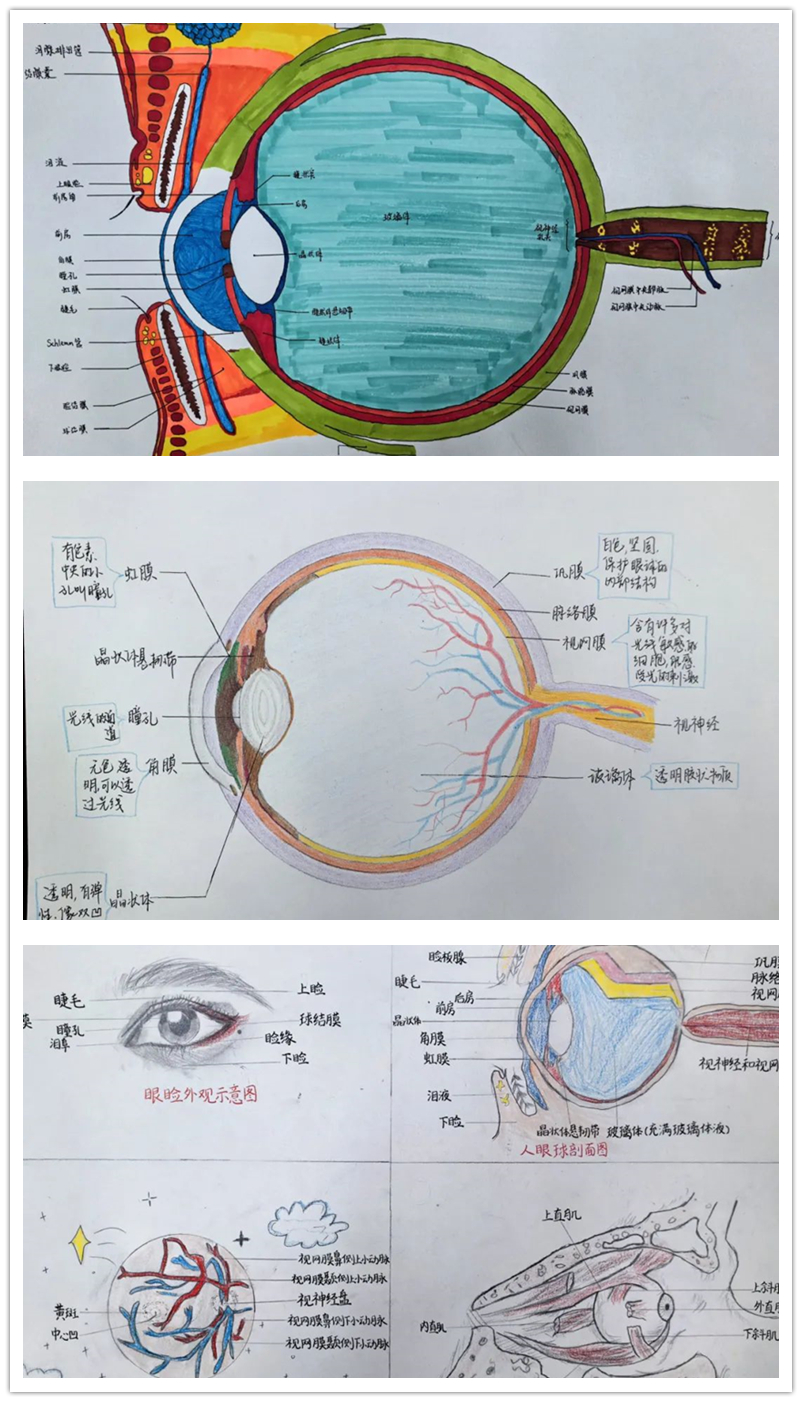 眼睛是心靈的窗戶,它有多美呢?眼球繪畫(huà)大賽的參賽選手們用細(xì)膩的筆觸、豐富的色彩,呈現(xiàn)出了一幅幅生動(dòng)的眼球解剖圖。那是眼視光學(xué)子對(duì)專業(yè)的熱愛(ài),也充分展示了同學(xué)們感受美、欣賞美、表現(xiàn)美和創(chuàng)造美的能力。