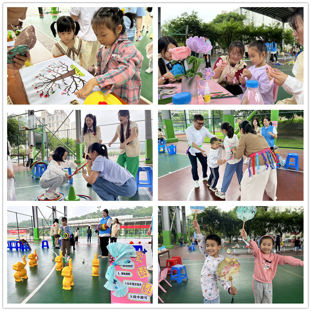 孩子們精彩的開場表演贏得了在場人員的連連稱贊,將現(xiàn)場氛圍帶入佳境。隨后的游園環(huán)節(jié),師生們精心設(shè)置的扭扭棒手工、漂漆扇子DIY、拉力繩貼貼紙等二十余項融入感統(tǒng)訓(xùn)練方法和技巧的趣味游戲,更是讓活動現(xiàn)場洋溢著家長孩子們的歡聲笑語。本次活動有效提升了同學(xué)們對兒童行為的觀察能力和溝通能力,也豐富了教職工們的校園文化活動,進一步營造了溫馨和諧的校園氛圍。