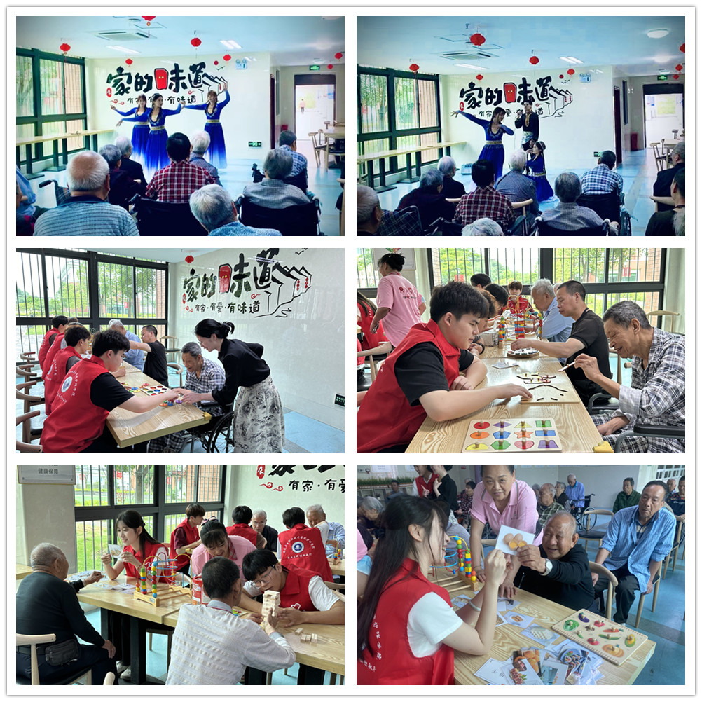 活動伊始,由我校新疆維吾爾族學(xué)生組成的歌舞團隊,為長者們獻上了一場精彩的民族舞蹈表演。同學(xué)們與長者們親切互動,進行水果卡片、繞珠、抓手指等一系列認知訓(xùn)練小游戲,既鍛煉了長者們的反應(yīng)能力,又增進了學(xué)生們對老年人需求的認知與關(guān)愛之情,在實踐中豐富所學(xué),在學(xué)習(xí)中促進成長。