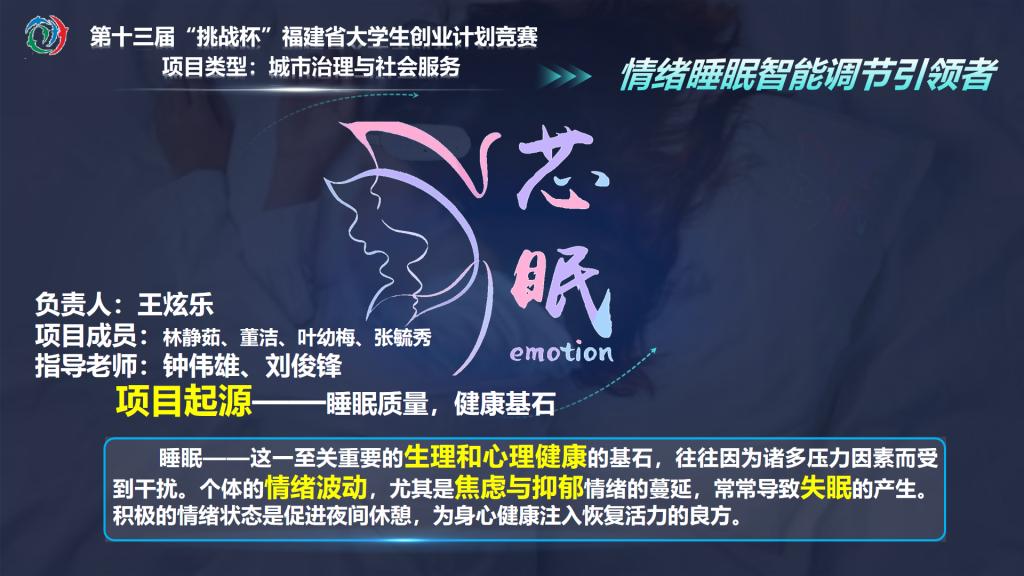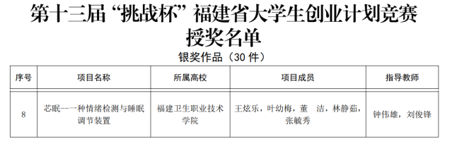 近日,第十三屆“挑戰(zhàn)杯”福建省大學(xué)生創(chuàng)業(yè)計(jì)劃競(jìng)賽暨第十三屆福建省大學(xué)生“創(chuàng)業(yè)之星”大賽頒獎(jiǎng)儀式在廈門大學(xué)嘉庚學(xué)院舉行。我校報(bào)送的作品《芯眠——情緒睡眠智能調(diào)節(jié)引領(lǐng)者》獲得銀獎(jiǎng)、《一路“柚”你——文旦柚產(chǎn)業(yè)升級(jí)助力鄉(xiāng)村振興》獲得銅獎(jiǎng)。