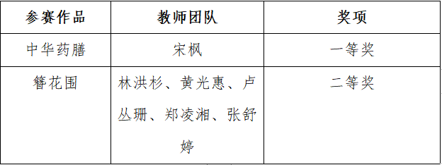 近日,由福建省高等職業(yè)院校外語教學(xué)指導(dǎo)委員會(huì)主辦的2024年福建省高職高專院校外語微課比賽落下帷幕,我校人文教學(xué)部教師團(tuán)隊(duì)獲得一等獎(jiǎng)1項(xiàng)和二等獎(jiǎng)1項(xiàng)。宋楓老師的作品《中華藥膳》成功入圍全國優(yōu)秀作品現(xiàn)場交流活動(dòng)。