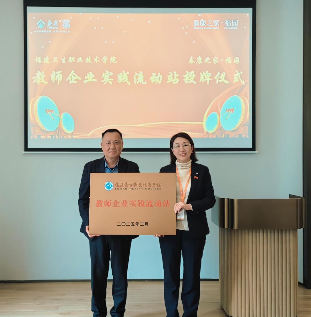 在泰康之家?福園,學(xué)校一行在園區(qū)工作人員引導(dǎo)下,參觀了居住公寓、醫(yī)養(yǎng)結(jié)合中心、文娛活動場地等,全面了解高端養(yǎng)老服務(wù)模式。座談會上,雙方就養(yǎng)老服務(wù)人才培養(yǎng)、實習(xí)實踐基地建設(shè)、產(chǎn)學(xué)研合作等方面進(jìn)行了交流探討。優(yōu)秀實習(xí)生代表楊慧分享了在泰康之家?福園的實習(xí)經(jīng)歷和成長感悟。活動最后,舉行了教師企業(yè)實踐流動站授牌儀式,泰康之家?福園總經(jīng)理余盈表示將全力支持教師實踐,為校企合作注入活力。曾武祈強調(diào),流動站將促進(jìn)師資實踐能力提升,助力人才培養(yǎng)質(zhì)量再上新臺階。