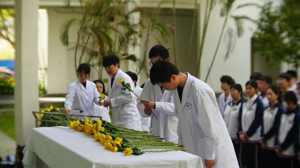 4月3日,醫(yī)學(xué)院舉辦“緬懷無言良師,追思醫(yī)學(xué)大愛”清明主題紀(jì)念活動。醫(yī)學(xué)院教師第二黨支部黨員、解剖學(xué)教研室教師、校健康科普青年講團成員、2024級臨床醫(yī)學(xué)(高本貫通)專業(yè)學(xué)生代表參加此次活動,閩侯縣職業(yè)中專學(xué)校師生代表受邀出席活動。