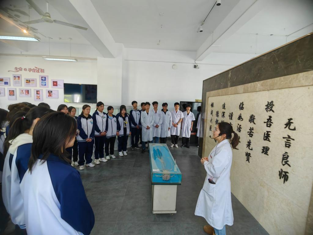 閩侯縣職業(yè)中專學(xué)校師生還參觀了人體形態(tài)科學(xué)館,姚瓊?cè)A老師細致地進行標(biāo)本講解、健康宣教,帶領(lǐng)校外師生深入了解人體結(jié)構(gòu)知識。
