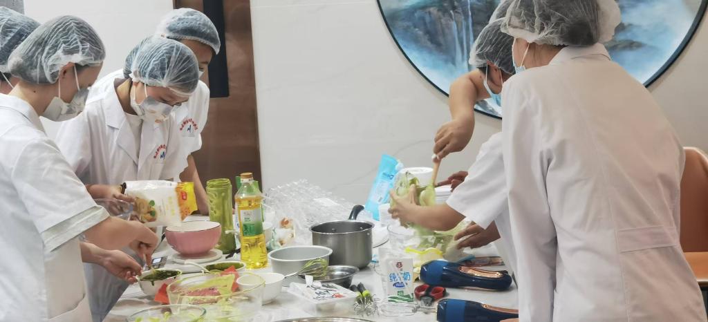 5月21日,醫(yī)學(xué)營養(yǎng)專業(yè)師生在教工餐廳舉辦了一場別開生面的健康甜品品鑒會?;顒右浴暗吞恰⒌涂?、高纖維”為核心理念,推出豆乳冰淇淋、斑斕豆腐蛋糕、南瓜巴斯克等創(chuàng)新甜品。通過現(xiàn)場制作與品鑒,師生們積極參與,現(xiàn)場氣氛熱烈。這一實踐不僅強化了學(xué)生對營養(yǎng)學(xué)理論的理解,更讓他們學(xué)會用專業(yè)知識解決實際生活中的飲食痛點。