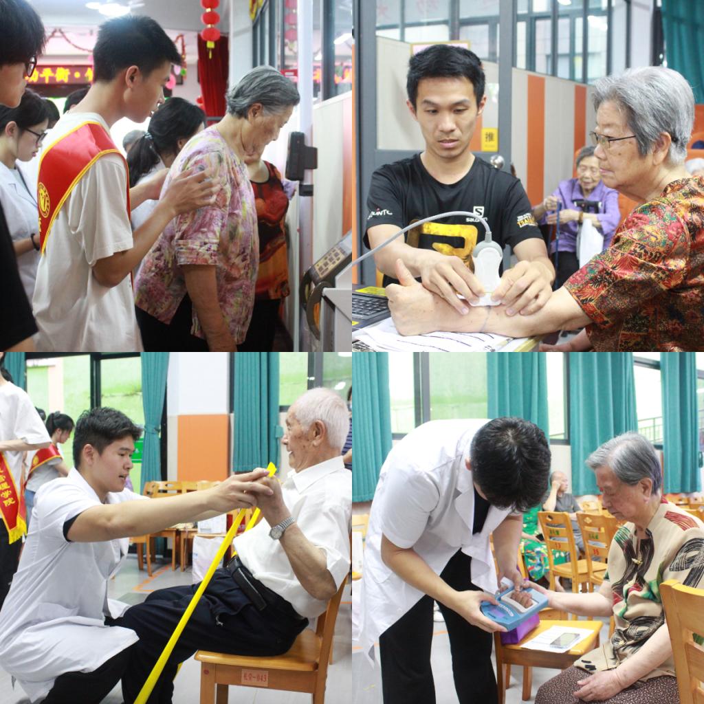 5月22日,醫(yī)學(xué)營養(yǎng)與體育保健專業(yè)組隊赴長青養(yǎng)老院,針對老年群體開展“均衡膳食,健康體重”專題健康宣教。徐軼彥老師以“千金難買老來‘肉’——關(guān)注老年肌少癥”為題,詳解蛋白質(zhì)攝入與抗阻訓(xùn)練的重要性。志愿者現(xiàn)場為老人們提供體成分分析、骨密度等健康檢測,并演示彈力帶訓(xùn)練動作,指導(dǎo)居家鍛煉方法。本次活動凸顯了醫(yī)體協(xié)同理念,獲得老年群體高度認可。