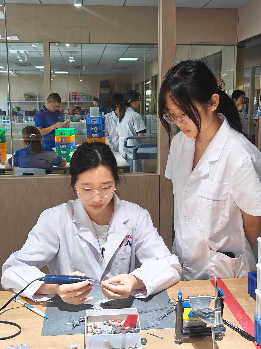 活動(dòng)當(dāng)日,訓(xùn)練營(yíng)學(xué)員在專(zhuān)業(yè)教師的帶領(lǐng)下,走進(jìn)維爾德義齒加工中心與美可普口腔醫(yī)院,開(kāi)啟沉浸式的實(shí)地參觀學(xué)習(xí)之旅。在維爾德義齒加工中心,學(xué)員們深入生產(chǎn)一線,近距離觀察義齒制作的精密流程,親手操作先進(jìn)設(shè)備,感受義齒加工技術(shù)的精細(xì)化與專(zhuān)業(yè)化;在美可普口腔醫(yī)院,學(xué)員們穿梭在不同科室之間,通過(guò)模擬接診、實(shí)操診療設(shè)備,熟悉口腔診療全流程,從問(wèn)診檢查到方案制定,從治療實(shí)施到術(shù)后護(hù)理,全方位掌握各崗位核心技能。這種“零距離”接觸企業(yè)與崗位的實(shí)踐方式,不僅讓學(xué)員們精準(zhǔn)把握行業(yè)崗位需求,更將課堂所學(xué)轉(zhuǎn)化為實(shí)際操作能力,極大地拓寬了就業(yè)視野。