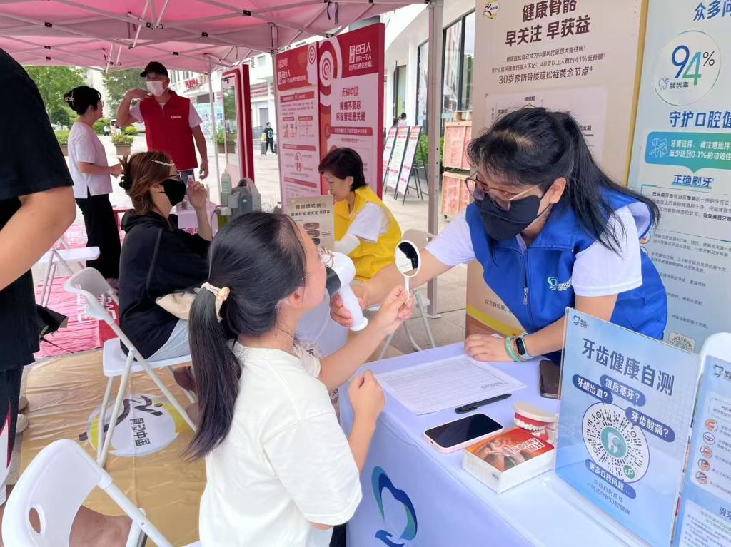 隨后,藥學(xué)院第二黨支部聯(lián)合福建同春藥業(yè)股份有限公司經(jīng)營第二黨支部、赫力昂(中國)在第一食堂旁開展口腔健康、骨健康科普公益活動。赫力昂(中國)醫(yī)藥公益團(tuán)隊通過現(xiàn)場義診為師生進(jìn)行口腔檢查、骨密度篩查并提供個性化健康建議,以圖文展板和手冊發(fā)放形式普及齲齒預(yù)防、骨質(zhì)疏松干預(yù)等知識。藥學(xué)院學(xué)生在企業(yè)專家指導(dǎo)下參與科普服務(wù)。藥學(xué)院第二黨支部黨員代表協(xié)助現(xiàn)場組織,切實(shí)提升師生健康素養(yǎng),彰顯醫(yī)藥衛(wèi)生行業(yè)服務(wù)社會的責(zé)任擔(dān)當(dāng)。