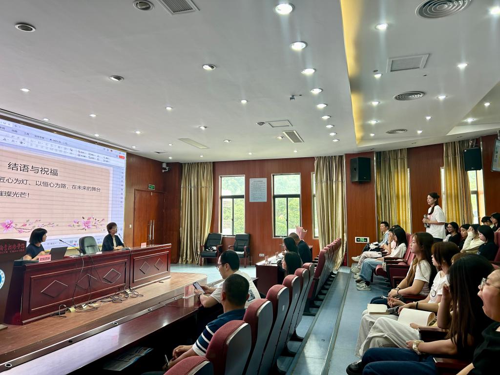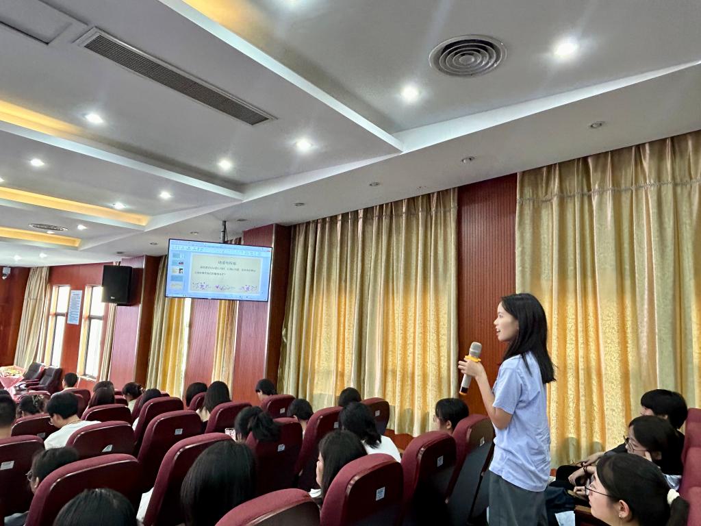 講座后,同學(xué)們圍繞“職場自驅(qū)力培養(yǎng)”“專業(yè)學(xué)習(xí)與實(shí)踐結(jié)合”等問題踴躍提問。歐陽泗妹以自身考取雙執(zhí)業(yè)藥師(西藥師/中藥師)及營養(yǎng)師證書的經(jīng)歷,分享“每日早起1小時學(xué)習(xí)”的堅持,寄語學(xué)子:“制定小目標(biāo)、保持好奇心、在實(shí)踐中創(chuàng)新——這是成長的‘金鑰匙’。”最后,我校工會副主席陳盛蘭向歐陽泗妹獻(xiàn)花,致敬其“以實(shí)干贏得信任,以擔(dān)當(dāng)帶動發(fā)展”的職業(yè)精神。
